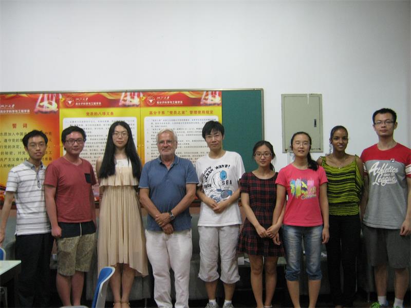 应我课题组计剑教授邀请,德国著名学者、海德堡大学应用物理化学系主任Michael Grunze教授于2014年5月12日至6月3日访问浙江大学高分子系,并开设全英文课程“Material Science of Interfaces”。课程受到高分子、物理、化学、化工等系师生广泛关注,选课报名踊跃积极。课程采用授课与研讨相结合的形式,除讲授相关知识外,鼓励参加课程的同学积极互动,以小组形式展示调研结果。课程期间,Grunze教授就表面科学的相关问题进行了细致梳理和解读。以相关基础物理化学理论为起点,探讨表面与界面的特殊性质,并对相关表面界面表征手段做了详尽深入的介绍。Grunze教授授课严谨细致,讲解深入浅出,课程内容丰富,教授节奏紧凑,受到了师生的好评。课程让大家对表面与界面问题有了更加深入的认识,丰富了思想,扩宽了视野,为将来的科研工作提供了借鉴和指导。