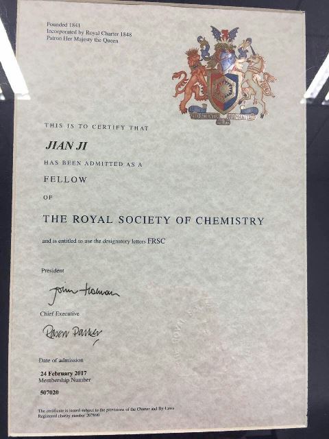 英国皇家化学会会士(Fellow of Royal Society of Chemistry)是英国皇家化学会授予在化学、应用化学和化学学术服务等领域做出重要贡献的科学家的荣誉,每年全世界仅有十余位杰出的科学家当选。计老师能够获此殊荣,显见其学术成就或世界肯定。