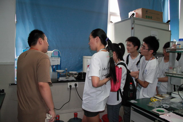 下午实验室的参观是全开放式的,营员们分组随意进入各个实验室,正在做实验的研究生们热情地为大家介绍仪器讲解实验,回答大家提出的各式问题。营员们纷纷表示通过参观大大地开拓了视野,也激起了专业研究的兴趣。有的营员参观以后直接找到了相关的老师,进一步加深了解,并表示如果有机会非常愿意加入共同参与。
